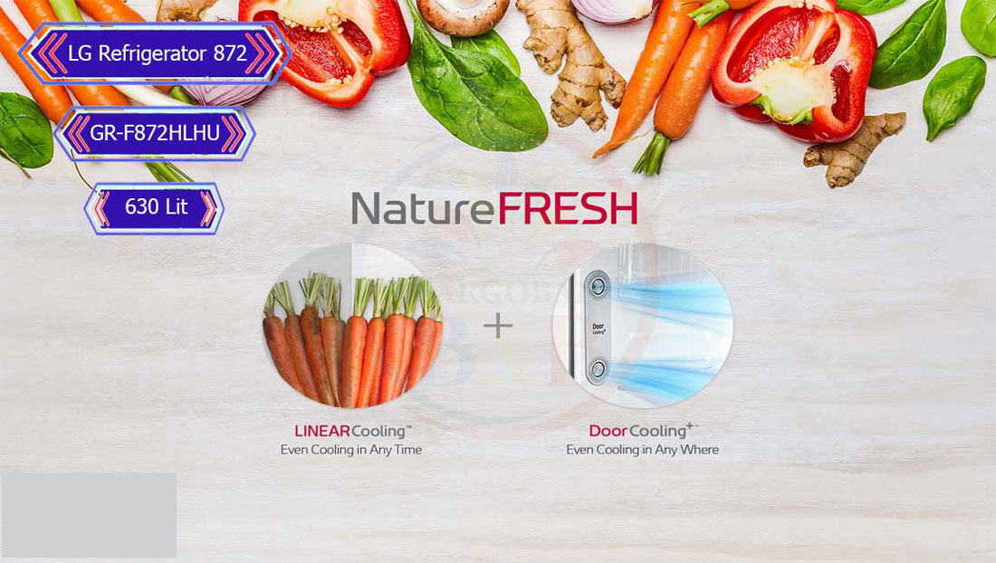 یخچال 30 فوت ال جی 872 مدل GR-F872 یکی از مدل های کاربردی و خوش ذوق این کمپانی می باشد کمپرسور خطی ال جی یخچال های این شرکت را در زمینه های صرفه جویی در مصرف انرژی طراوت و تازگی/میزان صدا /گنجایش و دوام در این صنعت پیشرو کرده است. کمپرسور خطی قدرت خنک کنندگی را به میزان موثری کنترل میکند و اصطکاک داخلی را برای صرفه جویی در مصرف انرژی و رسیدن به سطح انرژی +++A کاهش می دهد.استفاده ازین کمپرسورها به جای کمپرسورهای متداول در یخچال بالا پایین الجی سبب بازدهی باالاتر و صرفه جویی در مصرف انرژی می شود.